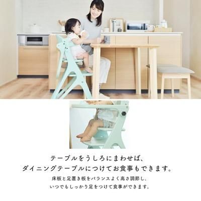 ダイニングテーブルでもお食事ができる、テーブル付きのパステルカラーなハイチェアです。