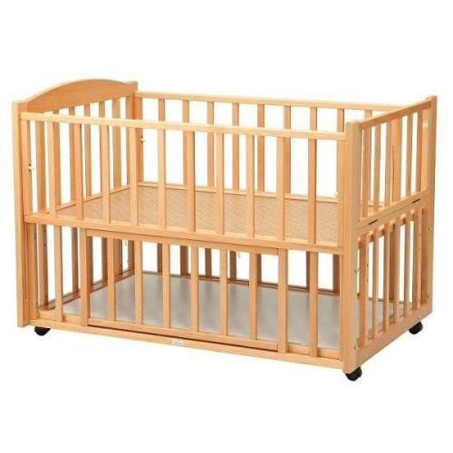| 機能 | 前後枠スライド式開閉(上下にスライドします。)横枠開閉式(手前に倒れます) 床板高さ2段階調節(床から45、40cm) 収納扉(2ヶ所)および棚付 4輪キャスター付(全てストッパー付) (ご注意) ※床板の高さを1段目(床から45?p)にセットしてベッドの前枠を 下げたときは前枠とマット面(床板に固綿マットを敷いた状態)はほぼフラット になりますが、床板を2段目(床から40?p)にセットした場合は、 前枠を下げたとき、前枠とマット面はフラットにはなりません。前枠がマット面よりも 数センチ上になります。 ※大人用のベッドの高さが45cmの場合は、床板を最上段にセットして市販の固綿マットを敷きベッドのキャスターを外して使用してください。ベッド全体の高さが5?p低くなり、ベビーベッドの高さが大人用ベッドと同じになります。この使い方が前枠が邪魔にならずおススメです。 |