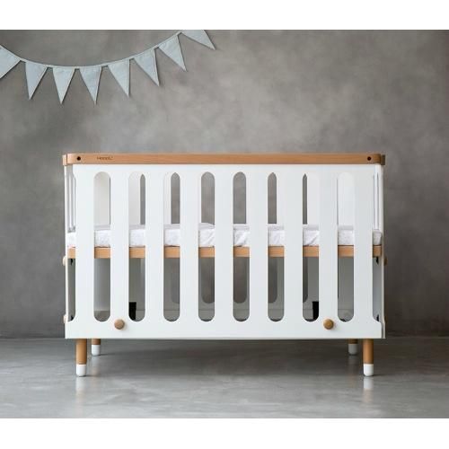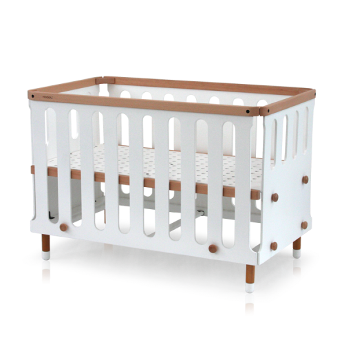 サークルの開閉機能をなくし、扉による挟まり事故や転落に繋がる原因を取り除いた、新しいスタイルのベビーベッド。赤ちゃんの使うものだから、イヤなにおいがほとんどない水性ウレタン塗装を採用。角をすべて面取りをし、滑らかな触り心地に仕上げ赤ちゃんにも大人にも寄り添ったやさしい設計に。留め具にも丸いボタンを採用し、ボルトやネジが見えないデザインになっています。