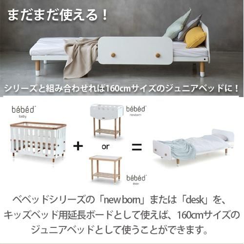 添い寝はママと赤ちゃんの信頼感や愛着が育まれる大切な時間。べベッドはベッドガードを使用して添い寝時に大人と赤ちゃんの眠るスペースをわけることで、ママも赤ちゃんも快適な睡眠環境を整えます。高さの異なる2枚のベッドガードが付属しているので月齢に合わせて付け替えが可能。