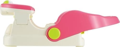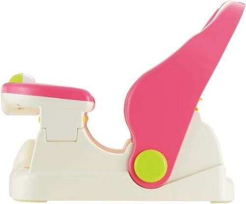 シャンプー時や成長に合わせて、3段階背もたれの角度を変えることができます。ゆったりシートと、外して干せるひんやりしない、やわらかマットです。くるくる回るガラガラおもちゃ付きです。
